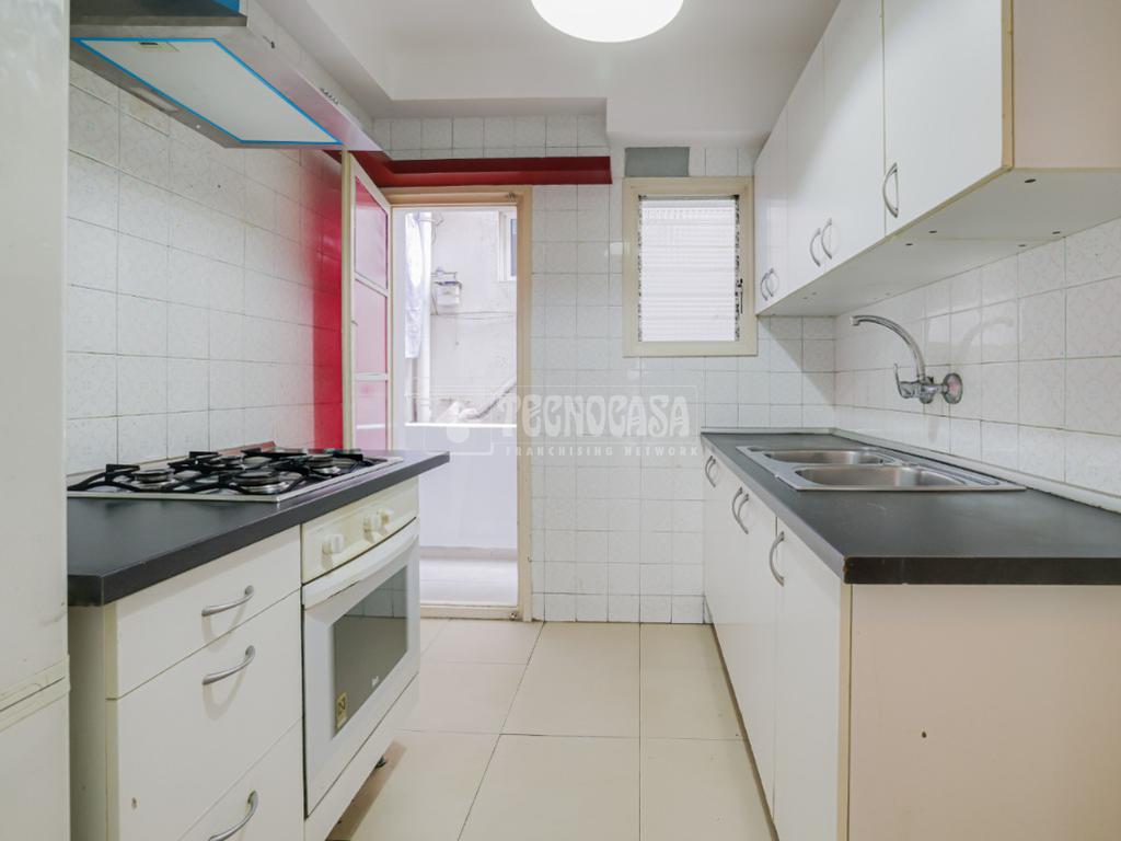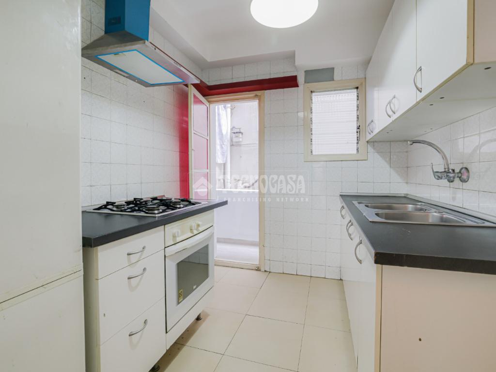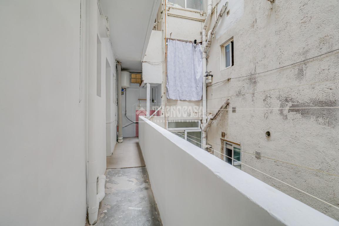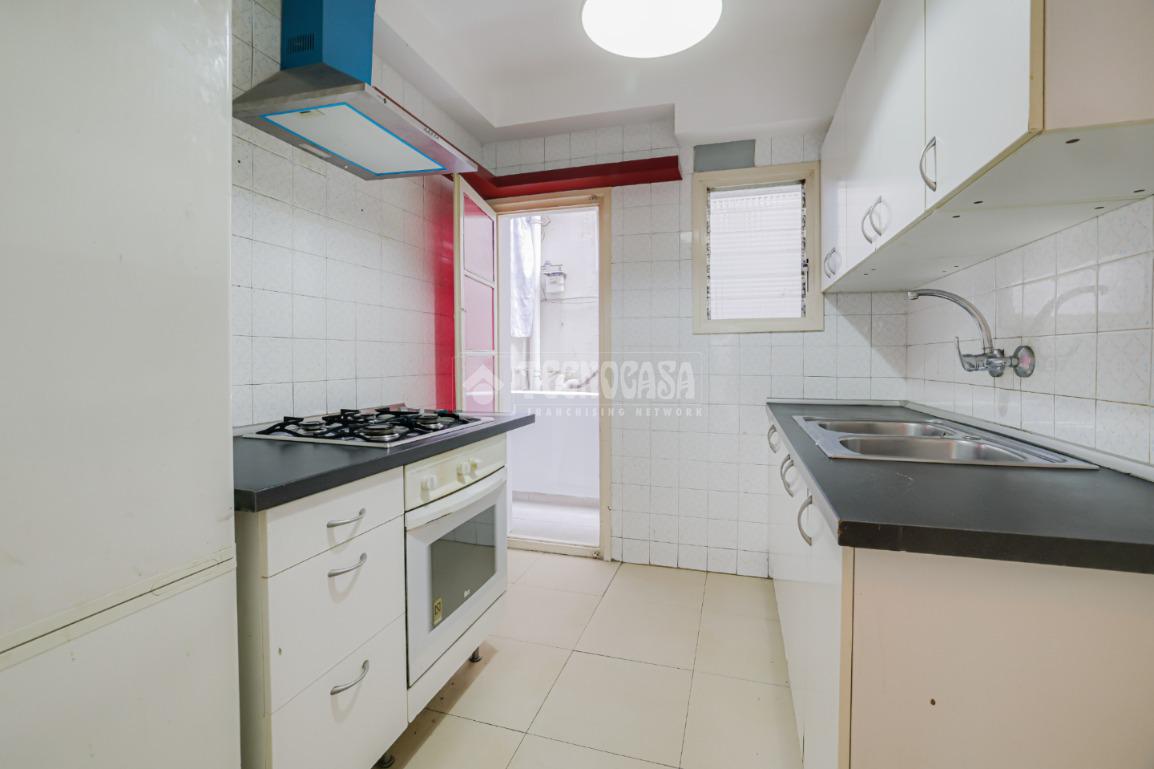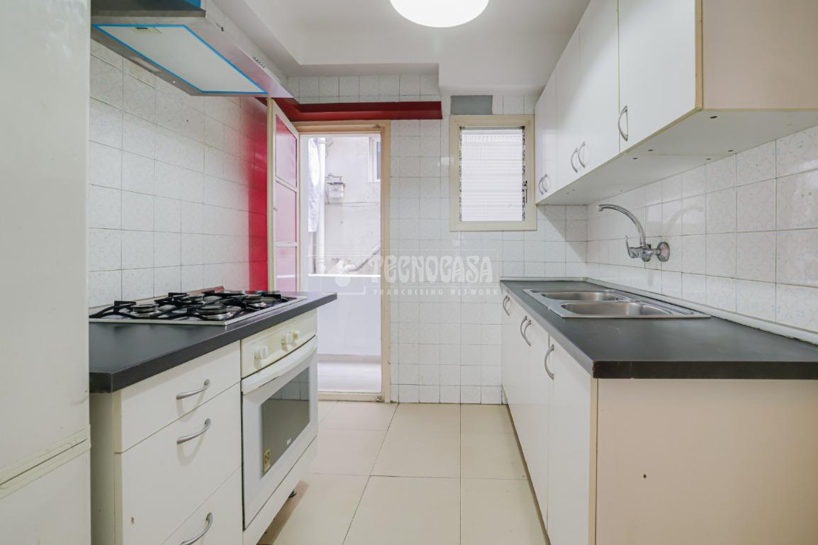 Al entrar, encontramos un recibidor que nos da paso a un baño completo amplio y reformado con plato de ducha y ventana exterior. Más adelante encontramos la cocina de origen, amplia y luminosa con salida a una galería abierta de aproximadamente 8m², orientada a un patio interior. Actualmente se utiliza como zona de lavadero y espacio de almacenamiento. A pesar de su orientación interior, es un espacio luminoso y funcional.