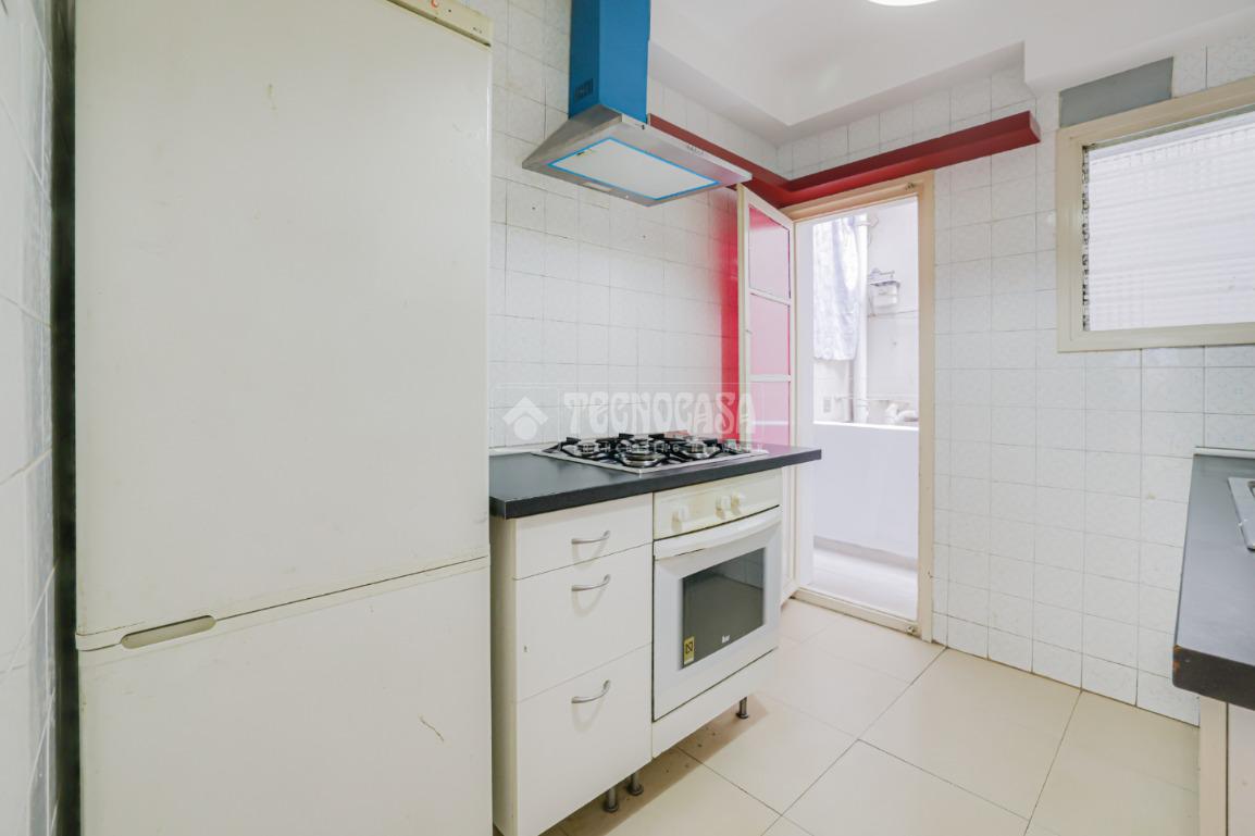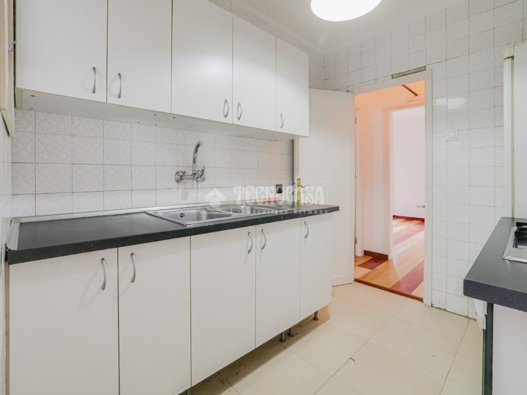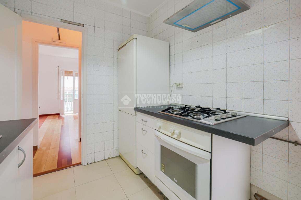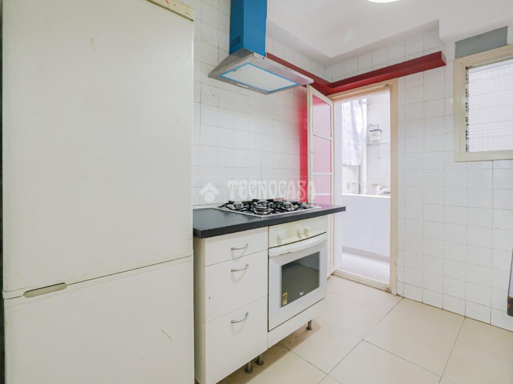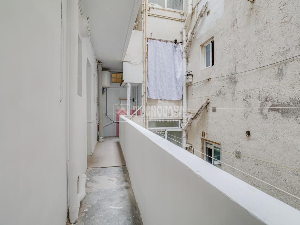 Al entrar, encontramos un recibidor que nos da paso a un baño completo amplio y reformado con plato de ducha y ventana exterior. Más adelante encontramos la cocina de origen, amplia y luminosa con salida a una galería abierta de aproximadamente 8m², orientada a un patio interior. Actualmente se utiliza como zona de lavadero y espacio de almacenamiento. A pesar de su orientación interior, es un espacio luminoso y funcional.