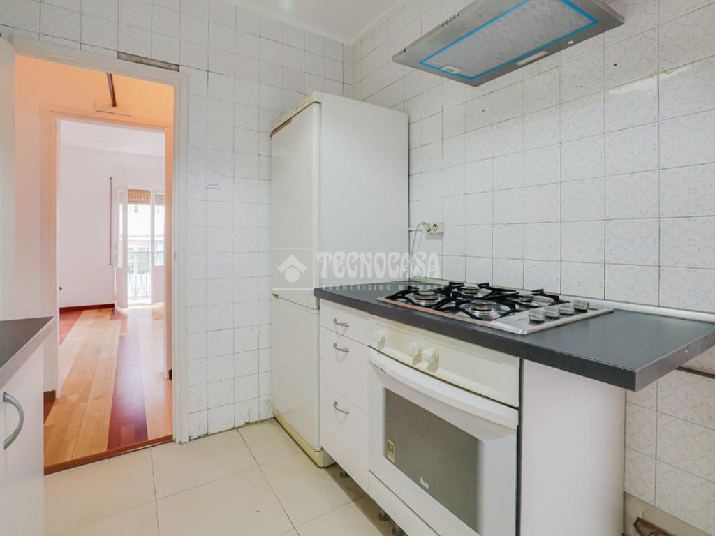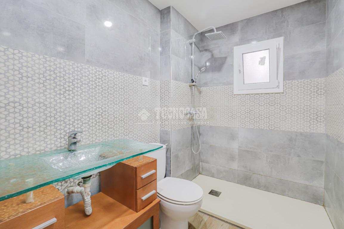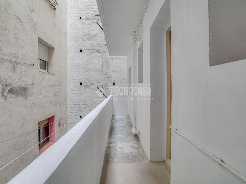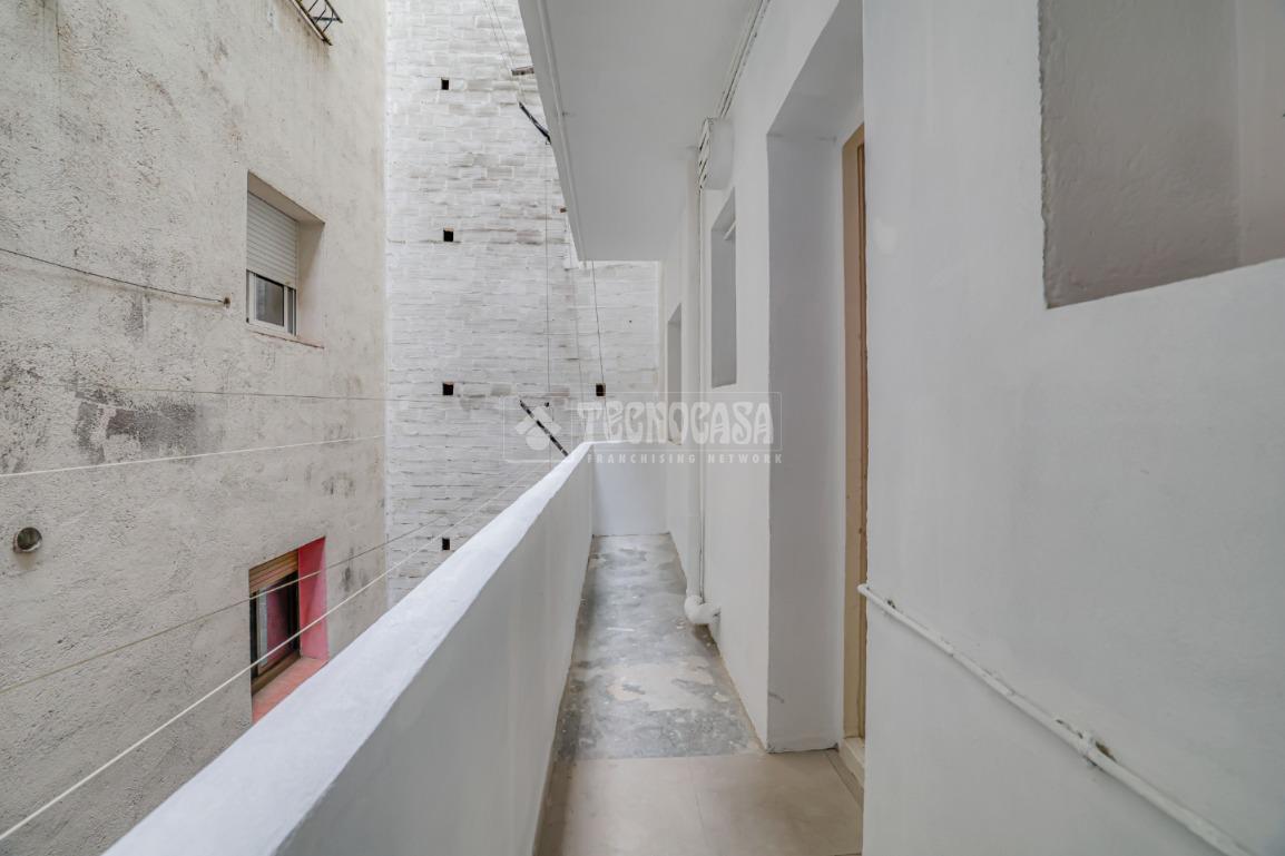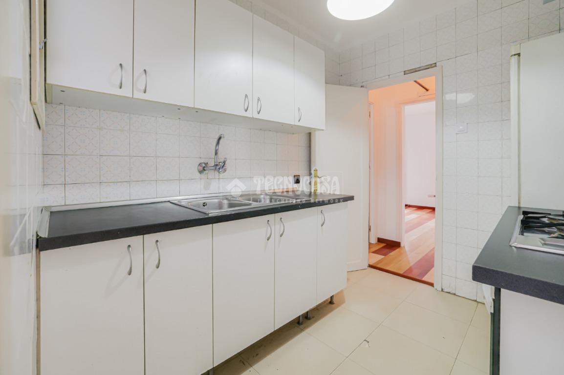 Al entrar, encontramos un recibidor que nos da paso a un baño completo amplio y reformado con plato de ducha y ventana exterior. Más adelante encontramos la cocina de origen, amplia y luminosa con salida a una galería abierta de aproximadamente 8m², orientada a un patio interior. Actualmente se utiliza como zona de lavadero y espacio de almacenamiento. A pesar de su orientación interior, es un espacio luminoso y funcional.