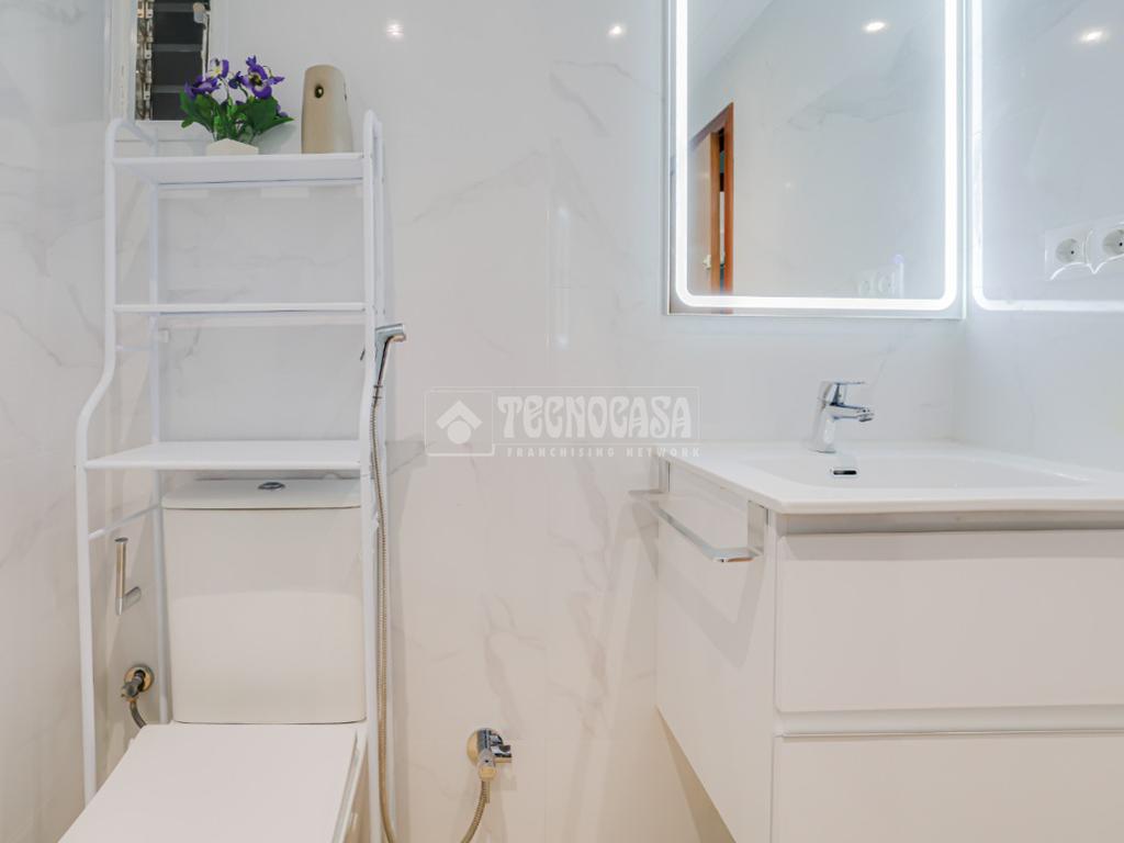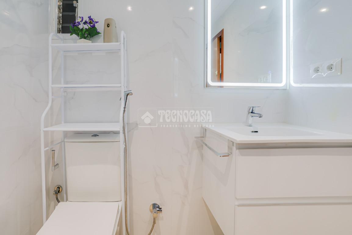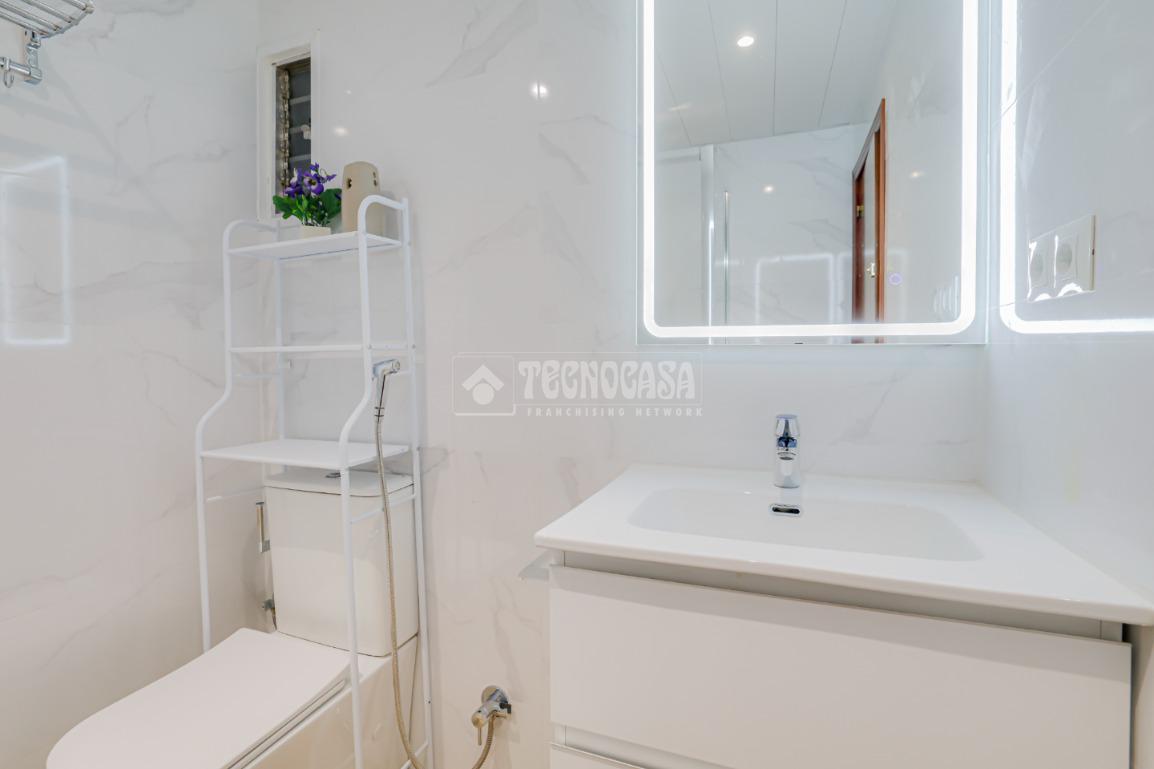 Cuenta con un baño recien reformado, cocina en buen estado y carpinteria de aluminio de doble cristal. De las tres habitaciones una es grande y dos son medianas, el salón es cuadrado con un gran ventanal y tiene espacio suficiente para la zona de descanso y la zona de comedor.
